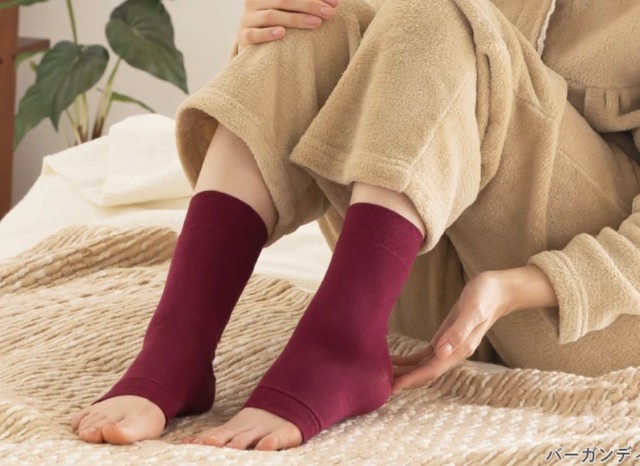 「かかとの乾燥」に対して、効果を実証した「科学的エビデンス」のあるソックスです。 かかとのひび割れやカサカサに対して、履くだけで潤してくれます。 足本来の水分を逃さず皮膚を潤すことで、過辛の水分量が向上してツルツルのかかとに。 保湿クリームを塗らずに、着用を継続するだけで手軽にかかとのスキンケアができます。 潤い成分の入った糸で織られており、締め付けがないので履きやすいソックスです。 ●素材 ナイロン、アクリル、レーヨン、ポリウレタン、ウール、ポリエステル