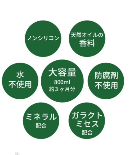硫酸系、スルホン酸系の界面活性剤は一切使わず、洗い上がりにパサつきを抑えて潤いと指通りをしっかりとサポート出来るコンディショナーです。