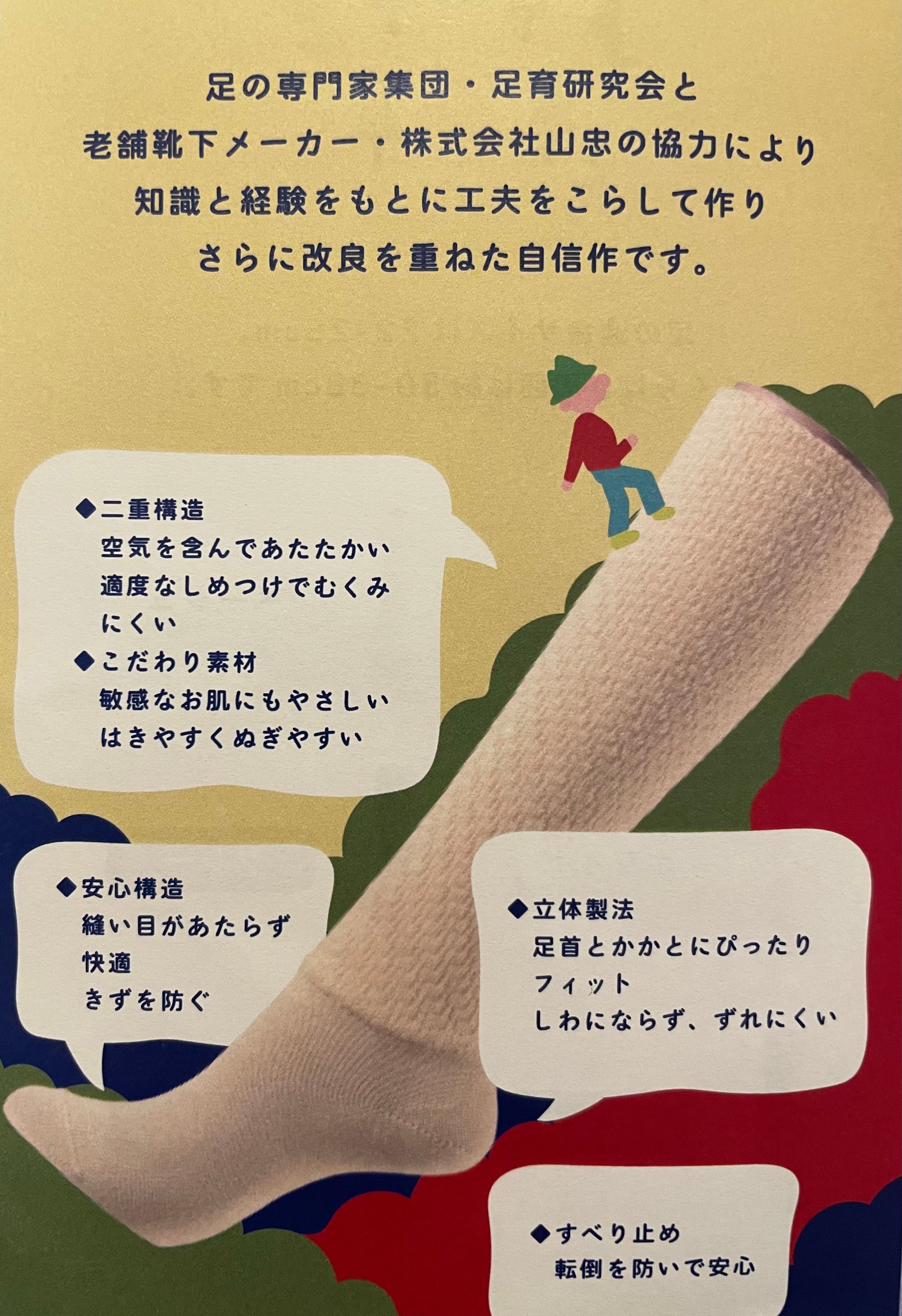 株式会社山忠のコラボにより開発された足育研究会オリジナル靴下です。